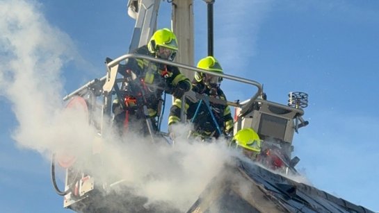 Wir wurden zu einem Brand eines mehrstöckigem Wohnhauses in die Hauptstraße alarmiert. Kurz nach unserem Eintreffen haben wir die Alarmstufe 2 nachalarmiert. Die Tür der betroffenen Wohnung wurde durch die Feuerwehr geöffnet, der Sperrzylinder war verriegelt. Da sich der Brand in der Dachkonstruktion ausgebreitet hatte, musste auch ein Teil des Daches geöffnet werden. Um 15:28 Uhr war Brand unter Kontrolle und der Gashaupthahn des Hauses abgeriegelt. Eine schon während des Innenangriffs geborgene Gasflasche wurde trotz Kühlung undicht. Daher hatten wir gegen Einsatzende nochmals besonderen Augenmerk darauf und konnten eine weitere Gefahr abwenden. Brandermittler werden im Laufe des morgigen Tages die Brandursache abklären. Es wurden keine Personen beim Einsatz verletzt. Insgesamt zwölf Feuerwehren waren mit 23 Fahrzeugen und 147 Einsatzkräften im Einsatz und konnten den Brand erfolgreich löschen. Wir konnten um 20:15 wieder die Einsatzbereitschaft herstellen.